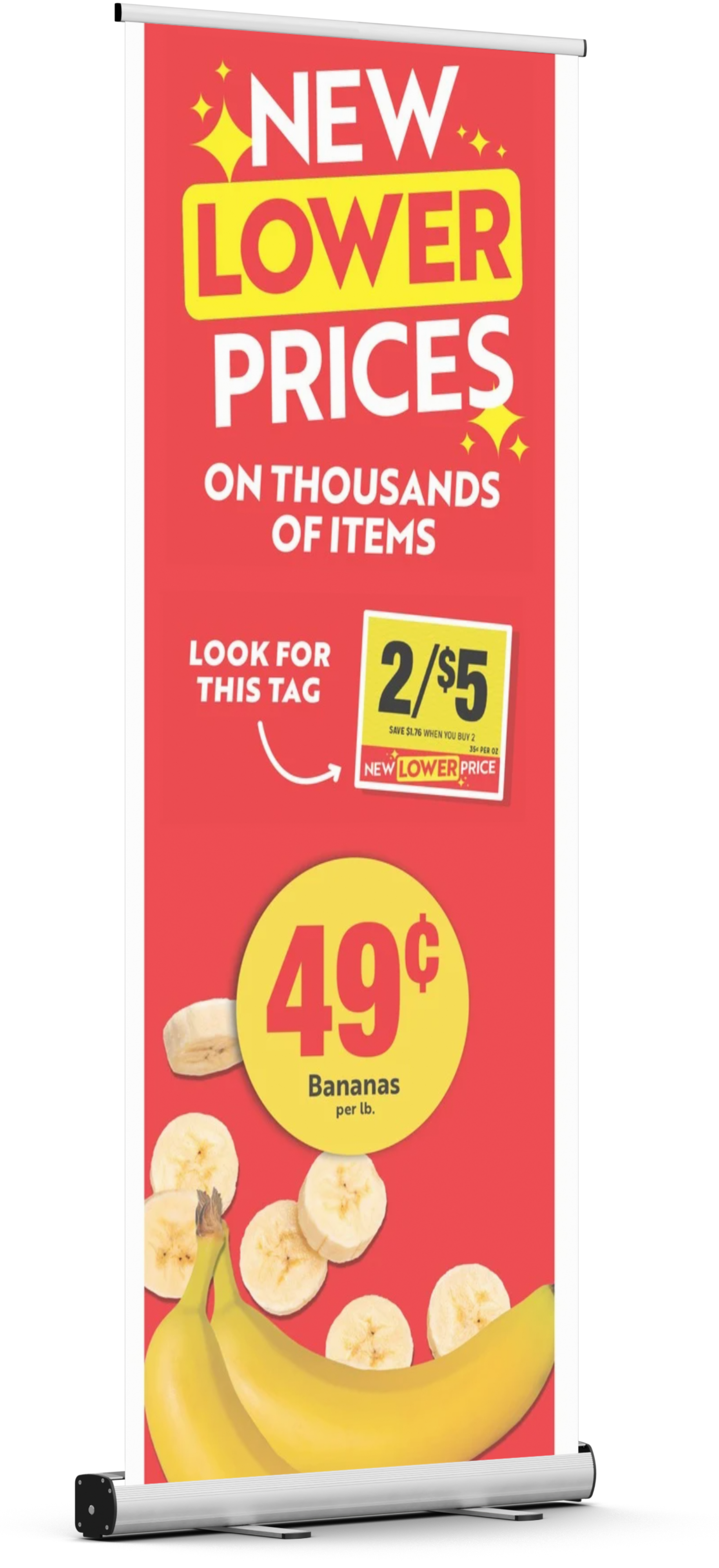 2. POS: Hero banners, bag stuffers, A-frames, register signs, solution ends, and price tags.